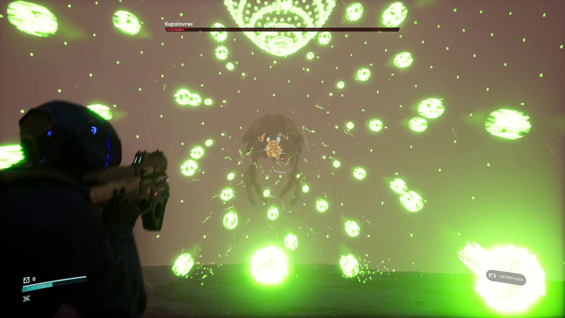 Kupolovrax bleibt zunächst stationär auf der Plattform. Halten Sie Abstand, feuern Sie Ihre Waffen konsequent ab und nutzen Sie diese Ausweichtechniken: