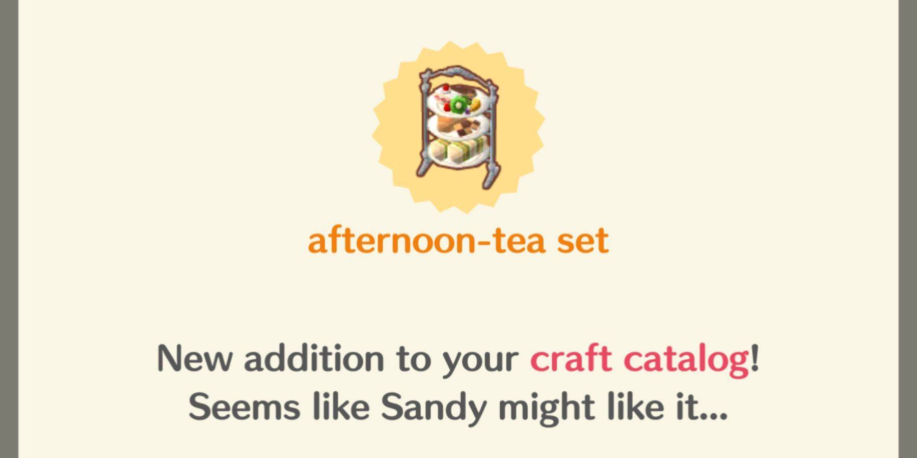 Una vez que Sandy alcance el nivel de amistad 15, desbloquearás su solicitud especial para crear el juego de té de la tarde. Esto requiere: