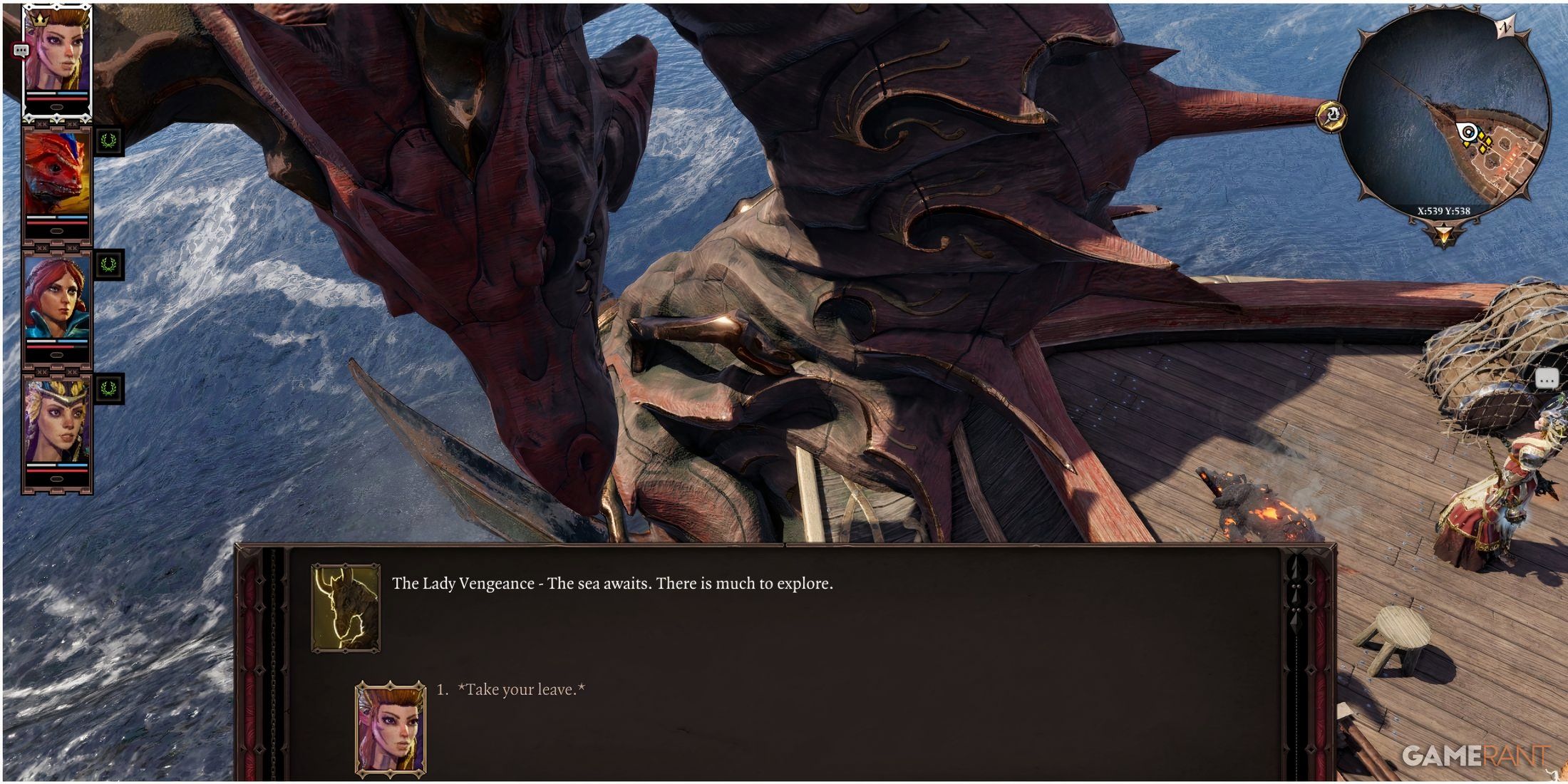 После прочтения сборника песен поговорите с Malady на палубе. Она попросит вас петь на корабль. Найдите фигурку дракона на западной стороне палубы и используйте песню. Это запускает корабль, но будьте готовы к немедленной засаде от мощных магистров. Убедитесь, что ваша вечеринка хорошо оборудована и имеет достаточные спутники.
