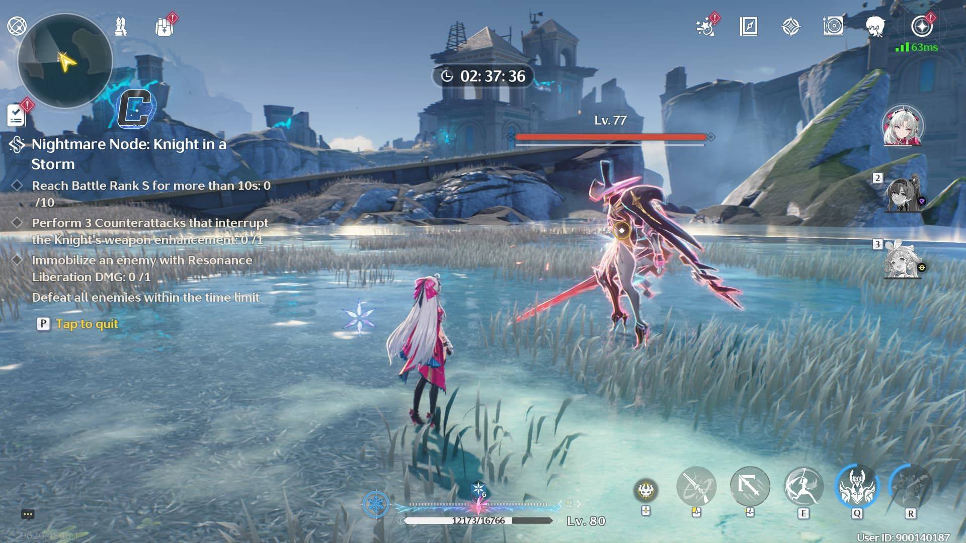 - Обездвижьте врага уроном Освобождения Резонанса — используйте ультимативную способность вашего персонажа, чтобы оглушить рыцаря (опустошите белую полосу под его здоровьем).