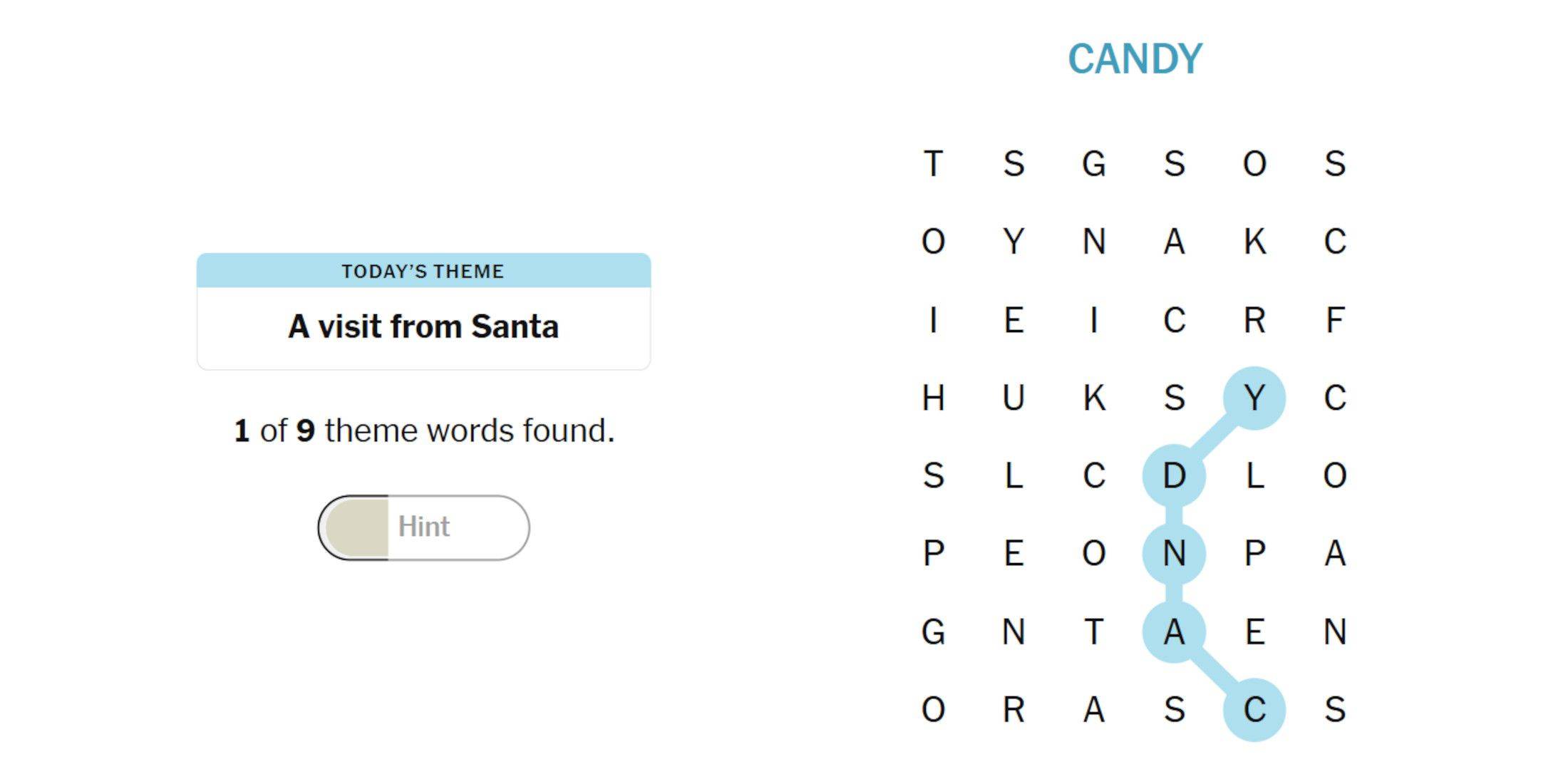 (本節揭示了“糖果”一詞及其在難題中的位置。
